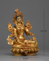 Discover the Grace of Green Tara with Our Small Gold Gilded Statue