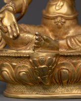 This Green Tara Swift liberator copper statue with a gold plating invites the healing force into your sacred area. This gorgeous item, weighing 3.04 kg, features elaborate workmanship and artificial coral and turquoise stone adornments, which enhance its spiritual significance. Respected as the swift liberator, Green Tara is renowned for her protective and compassionate abilities, which aid in removing barriers and alleviating anxieties. An essential spiritual focal point for any Tibetan Buddhist shrine or meditation space is this handcrafted statue.