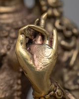 Standing at a height of 14.5 cm, the Green Tara Tibetan Statue is a beautiful example of grace and compassion, meticulously crafted from brass.