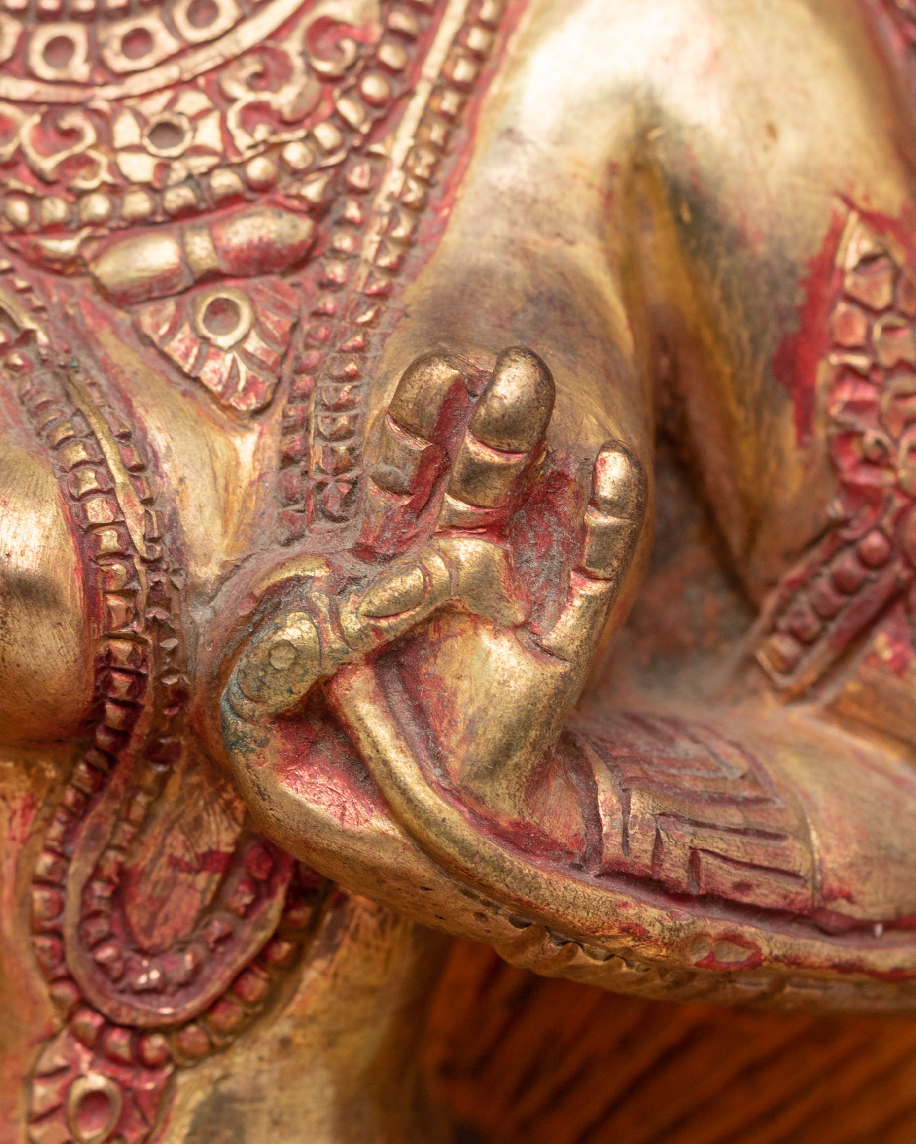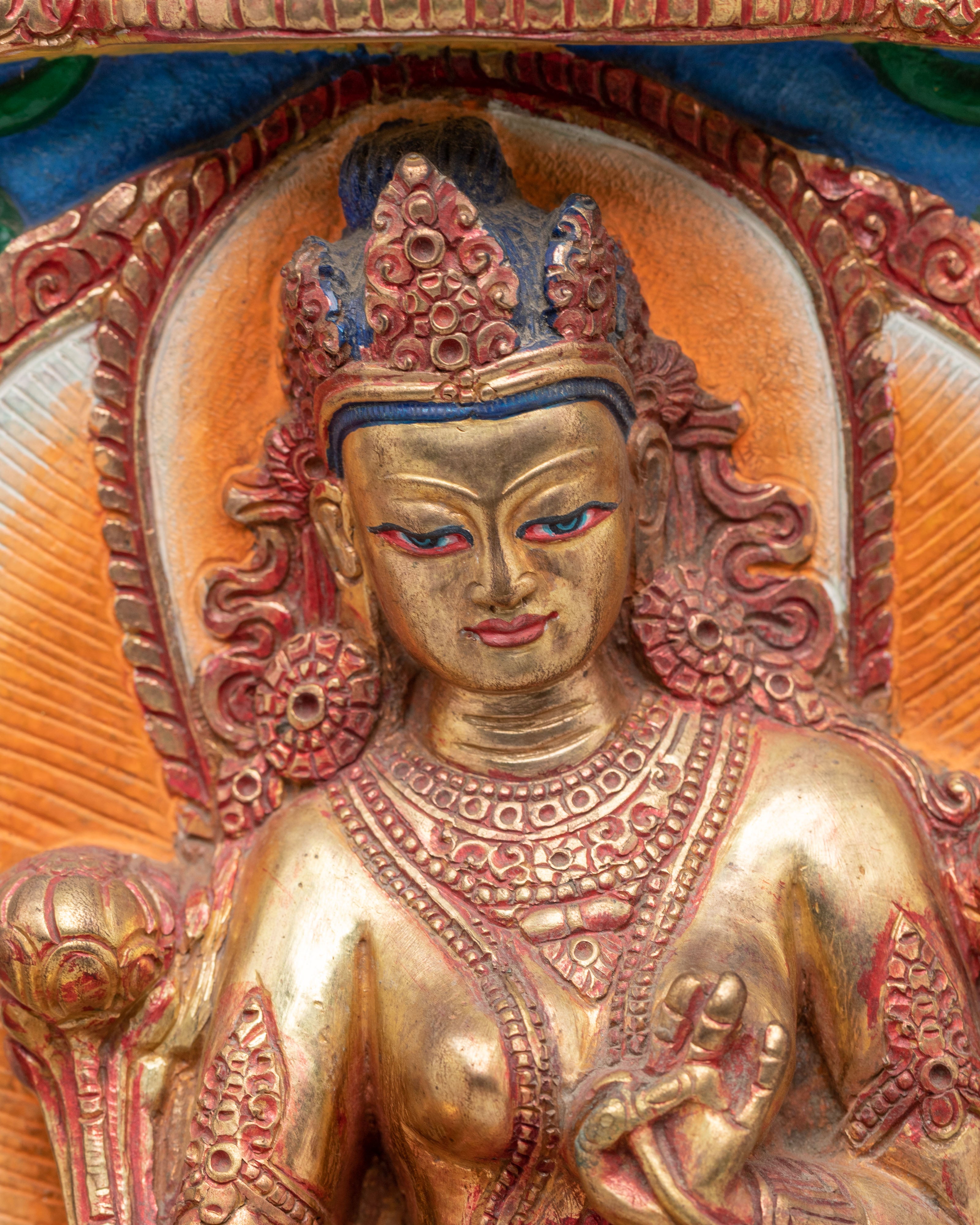 The statue’s copper body provides strength and stability, while the gold finish enhances its sacred nature. The rich colors and intricate details make this statue not only a tool for spiritual practice but also a stunning addition to any sacred space. Whether placed on your altar, in your meditation room, or as a central decorative item, it serves as a constant reminder of Tara's guidance and the compassion she offers to those who call upon her.