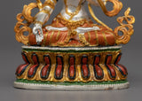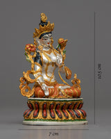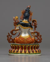 The Mini White Tara Sculpture is a tranquil and wonderfully created piece that captures the essence of White Tara, the Buddhist deity of compassion, healing, and longevity. This sculpture is meticulously machine-molded and fashioned from a sturdy copper body, with delicate gold and acrylic paintwork bringing out the exquisite intricacies and peaceful aura of White Tara.