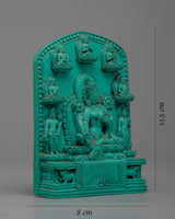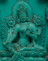 Introducing our exquisite Mother Green Tara Buddha Statuette, meticulously handcrafted using genuine turquoise powder. This magnificent statuette features intricate carvings of various deities on the sides, enhancing the divine presence of Mother Green Tara. The vibrant turquoise hue adds a touch of elegance and spirituality to this sacred piece, symbolizing purity and protection. Embrace the blessings of Green Tara, known for her compassionate and nurturing nature, and let her presence inspire you to cultivate inner strength and wisdom. Display this statuette in your sacred space or as a focal point in your home, and feel the uplifting energy and serenity it brings to your surroundings.