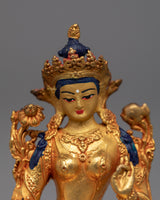 We have traditionally crafted the Mother Tara Statue by using the machine in a pure copper body and electroplated it with 24k gold. Green Tara is a supreme deity who guides lost and distracted beings to their original state. This indoor Himalayan art will be a tremendous gift from Nepal to a practitioner like you.
