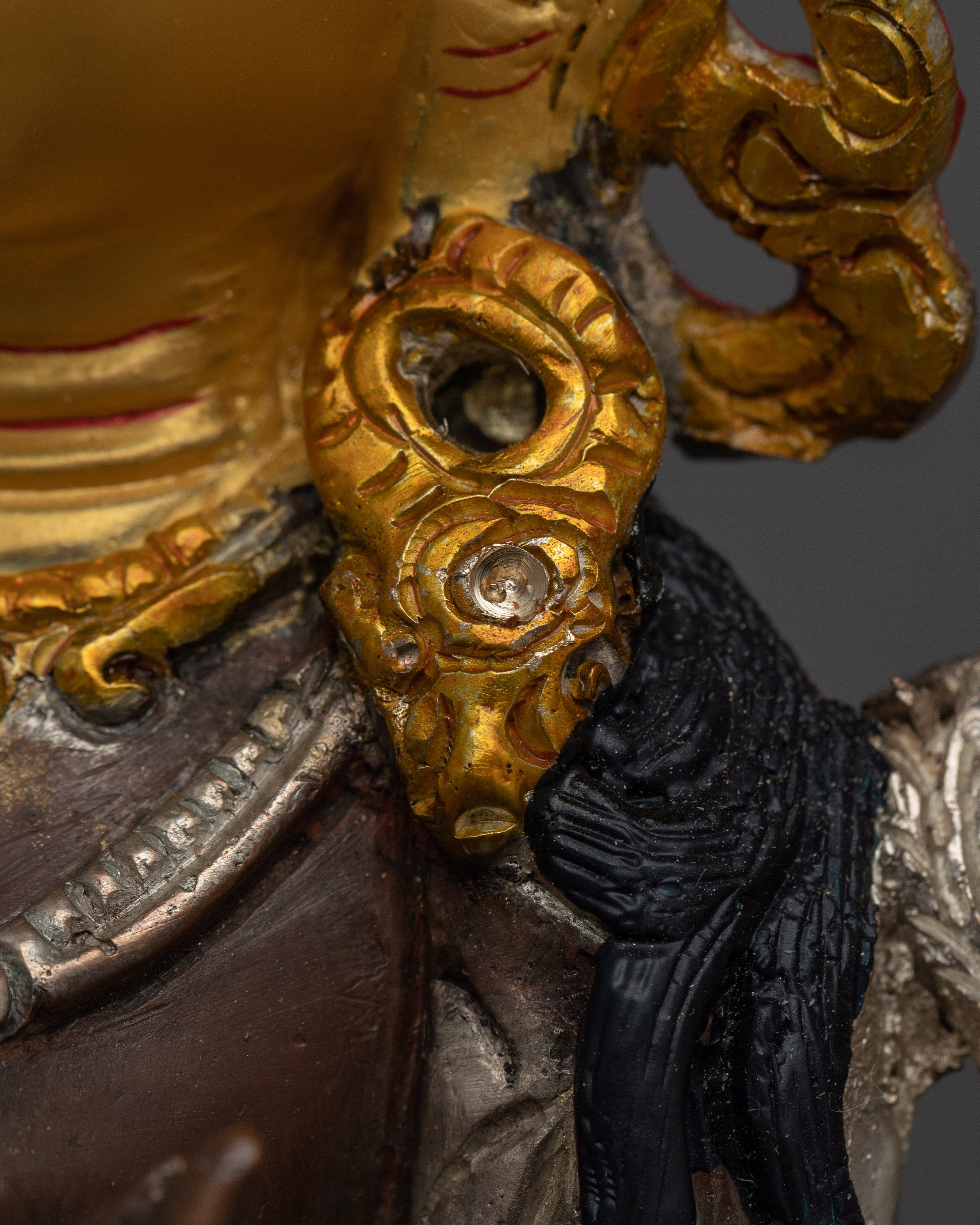 Materials: 24K Gold Gilded, Gold & Acrylic Paintings, Oxidized Copper Body, Silver Plated