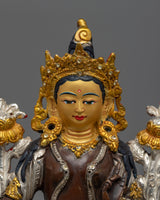 Serene Oxidized Green Tara Statue with Silver-Plated and Copper Body
