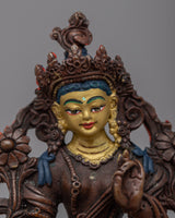 Discover Compassion with Our Small Green Tara Statue | Oxidized Copper Sculpture