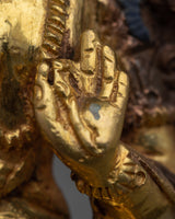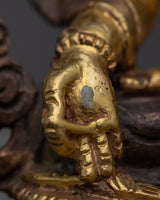 The copper body's exquisite precision and workmanship demonstrate the artisan's unwavering dedication to producing a work that exudes spirituality and reverence. The ornate 24k gold gilding highlights White Tara's great spiritual significance by adding yet another level of opulence.
