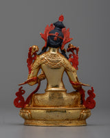 Our copper Tiny Green Tara statue, a representation of enlightened action and caring care, might be the ideal enhancement to your tranquil retreat. This 3.7" x 2.7" statue, despite its diminutive size, exemplifies the Buddhist principles of compassion, mercy, and prompt action. Work of art that was painstakingly machine-molded from top-quality copper. We are proud of the minute details, the vivid acrylic paintings, and the expert 24-karat gold gilding. This green deity's glossy texture symbolizes Tara's immortality and the enduring influence of her teachings.