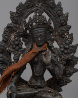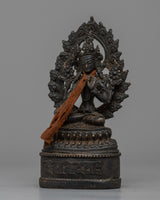 The White Tara Zen Buddhist Art is a magnificent piece of craftsmanship, meticulously handcrafted on a brass body. The artisans have presented the statue with an antique finish, adding an aura of timelessness and elegance to the artwork. White Tara, a revered deity in Buddhist traditions, is depicted in a serene and compassionate posture, radiating a sense of tranquility and inner peace. The fine details and intricate craftsmanship capture the grace and beauty of the White Tara form.