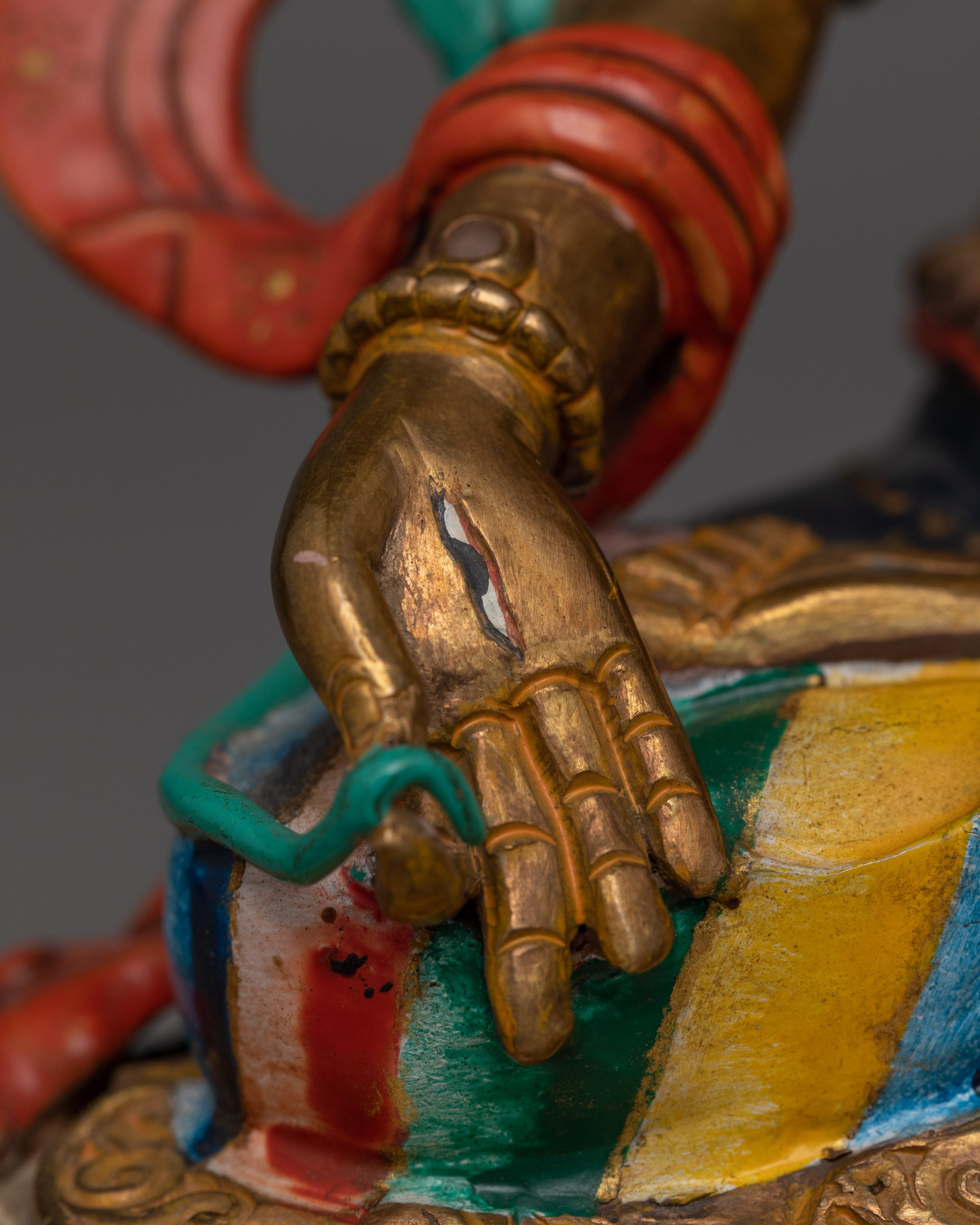 The statue's use of vivid acrylic paintings and gold not only improves its aesthetic appeal but also represents White Tara's holy essence. Her calm and caring manner is depicted in a lifelike manner, demonstrating the excellent craftsmanship. This statue is a great addition to homes, meditation areas, or altars for people who want to infuse their surroundings with a healing and compassionate symbol.