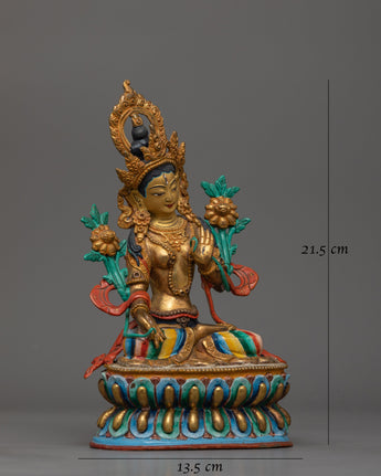 White Tara Handcrafted Small Colored Statue | Goddess of Compassion
