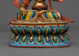 The White Tara Handcrafted Small Colored Statue is made of fine copper and has an antique finish. It is 21.5 cm tall. The superb layer of 24K gold plating on this statue highlights its bright presence and spiritual significance. A sense of security and tranquility permeates any area as the serene and caring expression of White Tara is expertly represented. Her amazing lotus throne, upon which she sits gracefully, and the intricate designs on her robes are both revealed by detailed carvings.