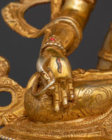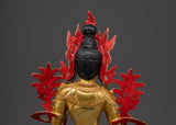 This statue is a masterwork of Himalayan craftsmanship. The serene face of White Tara, with her open palms and the signature seven eyes on her face, hands, and feet, symbolizes her all-seeing wisdom and watchful protection. The inlays of coral and turquoise enhance the sacred energy and aesthetic richness of the piece, while the gold-plated copper and mercury elements signify purity and transformative power. Ideal for practitioners, collectors, and spiritual spaces, this statue serves as a lasting beacon of light, love, and liberation.