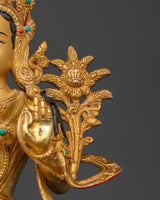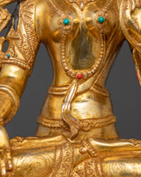 Channel the divine energies of healing, compassion, and long life with this White Tara Handmade Statue, a powerful spiritual crafted with reverence and detail. Standing at 32.5cm, this majestic figure is adorned with gold plating, with coral and turquoise, and crafted from copper infused with sacred mercury, making it not only visually stunning but also spiritually potent. White Tara, the female Buddha of compassion and longevity, is often invoked for physical healing, inner peace, and protection from obstacles.