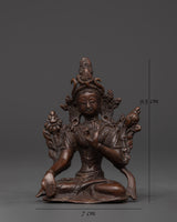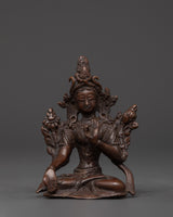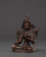 White Tara Longevity Deity Statue | Oxidized Copper Tibetan Deity Figurine
