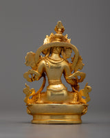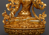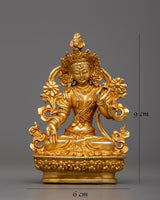 At an elegant height of 9 cm, the White Tara Machine Made Statue represents the caring and compassionate attributes of White Tara, the goddess of longevity and compassion. This monument, which was carefully crafted utilizing machine techniques, perfectly conveys the grace and tranquility of White Tara's heavenly presence. It is made of copper and has beautiful 24k gold plating on it. It exudes spiritual grace and purity.