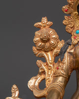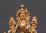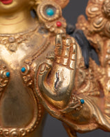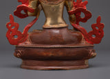Bring the divine presence of the White Tara, the revered Buddhist goddess of compassion and longevity, into your sacred space with this stunning White Tara Sculpture. Meticulously handcrafted from oxidized copper, adorned with 24k gold plating, and inlaid with coral and turquoise stones, this 22cm-tall piece is more than a statue; it is a radiant symbol of peace, purity, and healing.