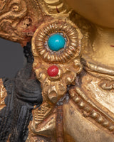 White Tara, known for her seven eyes and serene presence, embodies compassionate wisdom and offers protection from physical and spiritual suffering. This sculpture captures her beauty and detail with exceptional craftsmanship, making it perfect for meditation altars, home shrines, or as a spiritual gift. The use of artificial coral and turquoise reflects traditional Himalayan aesthetics while upholding ethical sourcing practices. This is a timeless piece for Vajrayana practitioners, collectors of sacred art, or anyone seeking blessings of health and longevity.