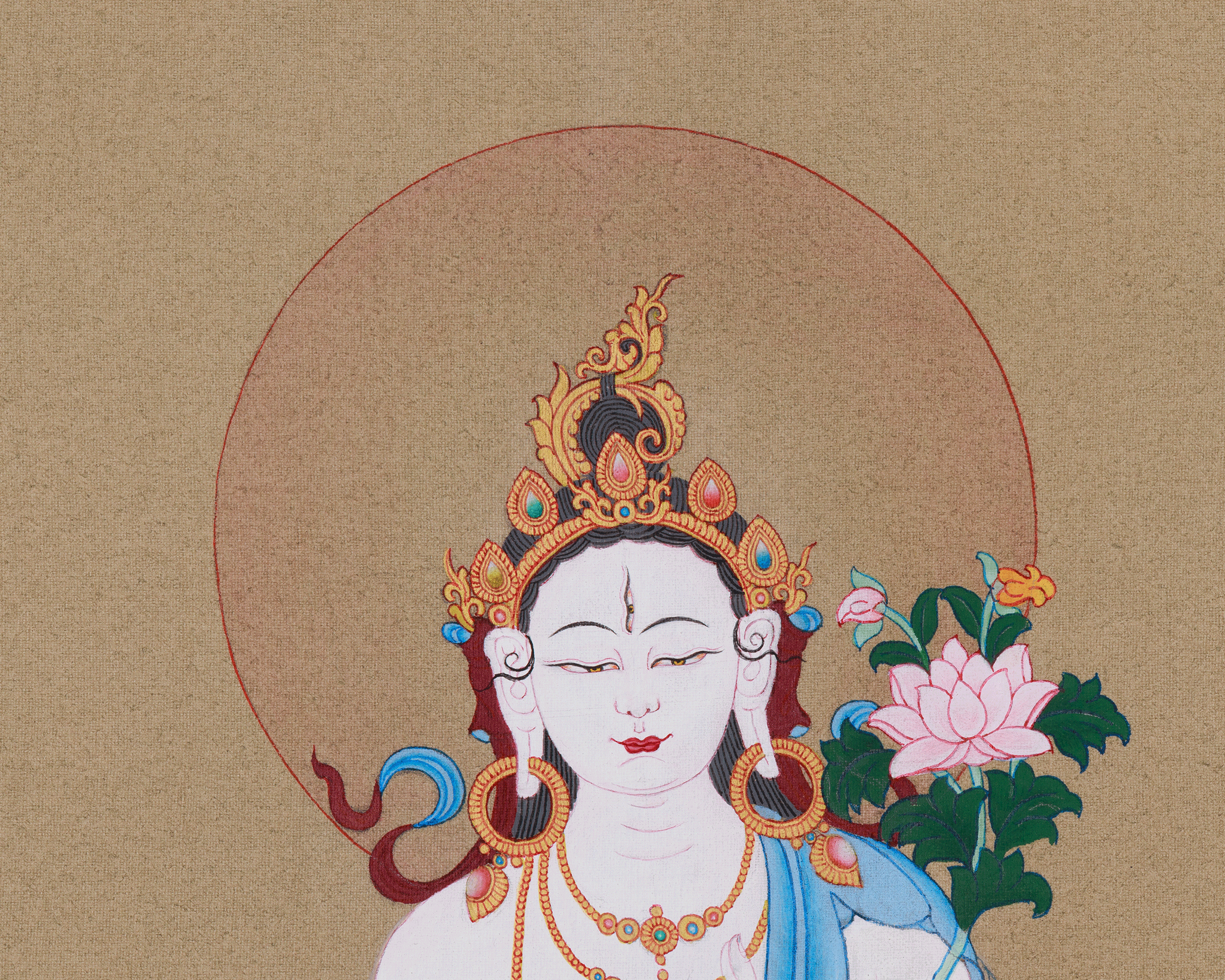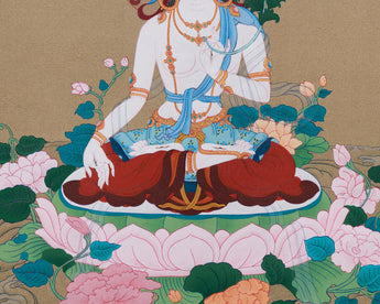 Handmade Female Bodhisattva White Tara Thangka | Goddess of Longevity and Compassion