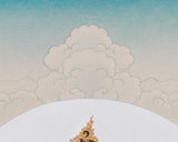 This thangka beautifully showcases White Tara, the Goddess of Longevity and Compassion, in a graceful, meditative pose atop a blooming lotus. Her peaceful face reflects infinite wisdom, and she gently holds a lotus in her right hand, symbolizing purity. Her left hand is raised in a warm gesture of blessing and protection. The soft, white hue of her skin highlights her connection to purity and wisdom, while her seven eyes—located on her forehead, palms, and soles—symbolize her ability to perceive the suffering of all beings and offer healing. Encircled by gentle, ethereal clouds and a lotus platform, this art piece truly captures White Tara’s calming yet powerful energy, representing her qualities of healing and compassion.