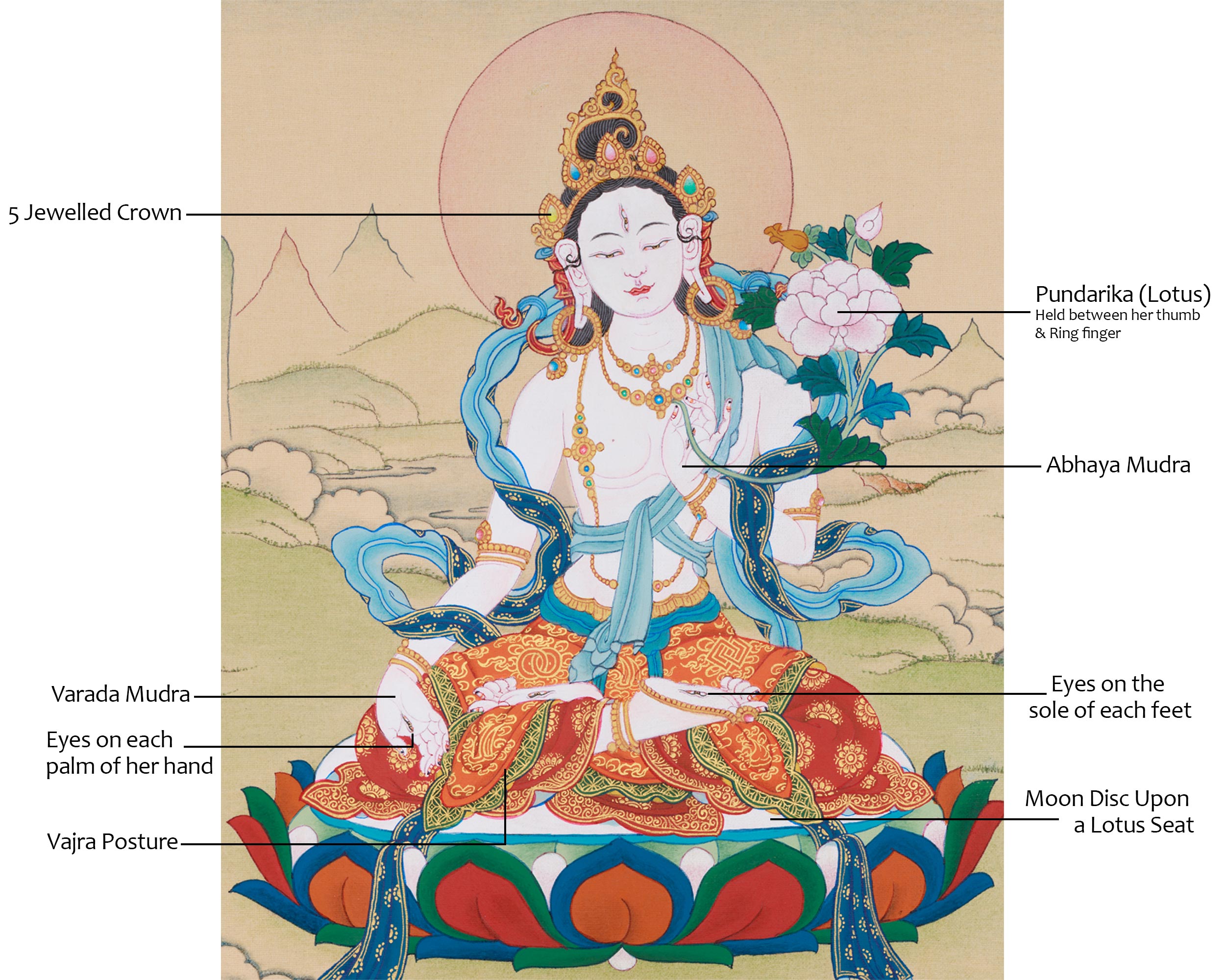 White Tara Buddhist Art | Seven-Eyed Goddess of Healing and Protection