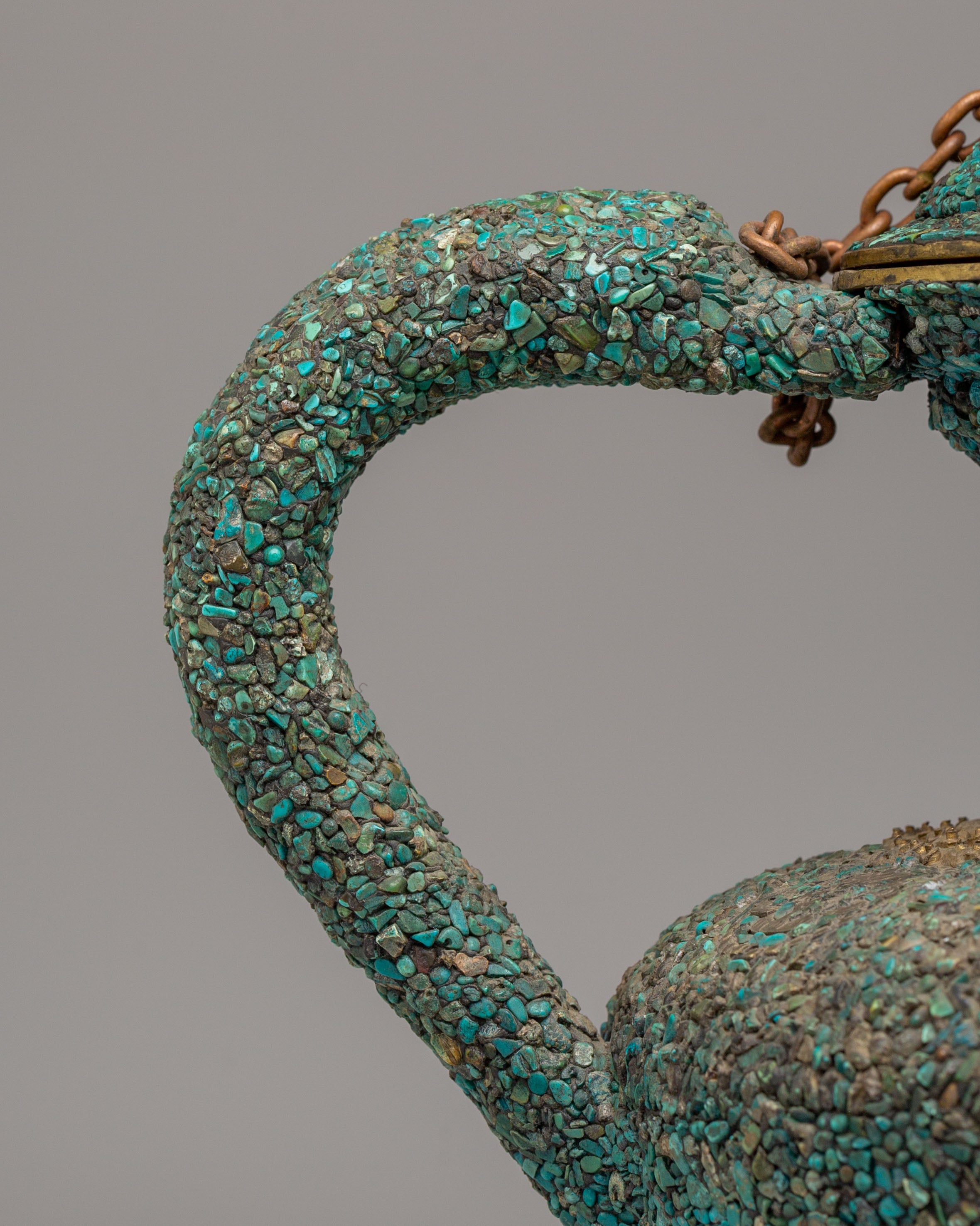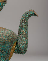 Crafted from copper and adorned with exquisite turquoise details, this teapot is a true work of art. The copper body helps keep your tea warm longer, while the turquoise inlays add a unique touch of color and texture, elevating the overall design. The combination of these materials is not only visually appealing but also serves to enhance the functionality of the teapot, making it perfect for daily use or special occasions.