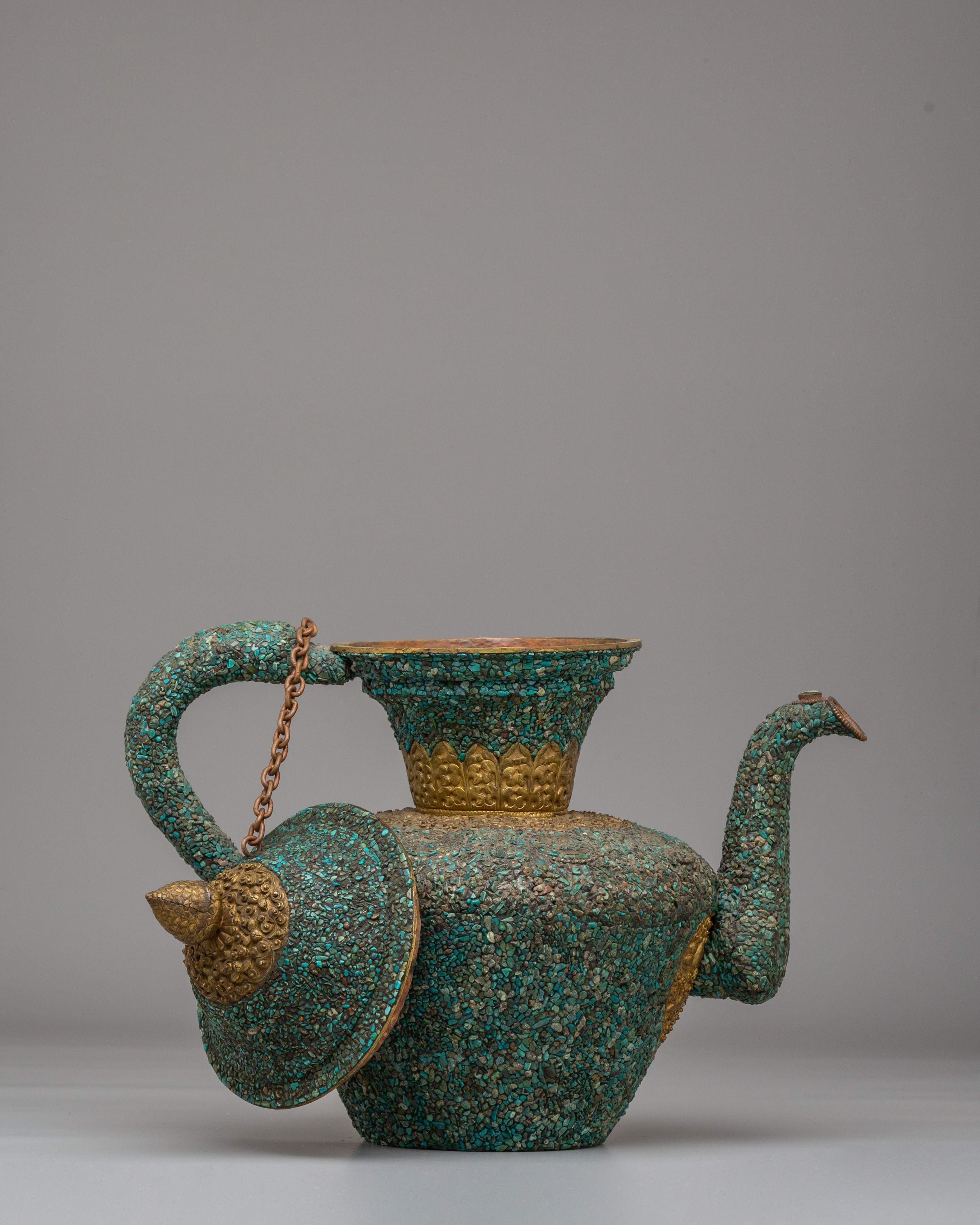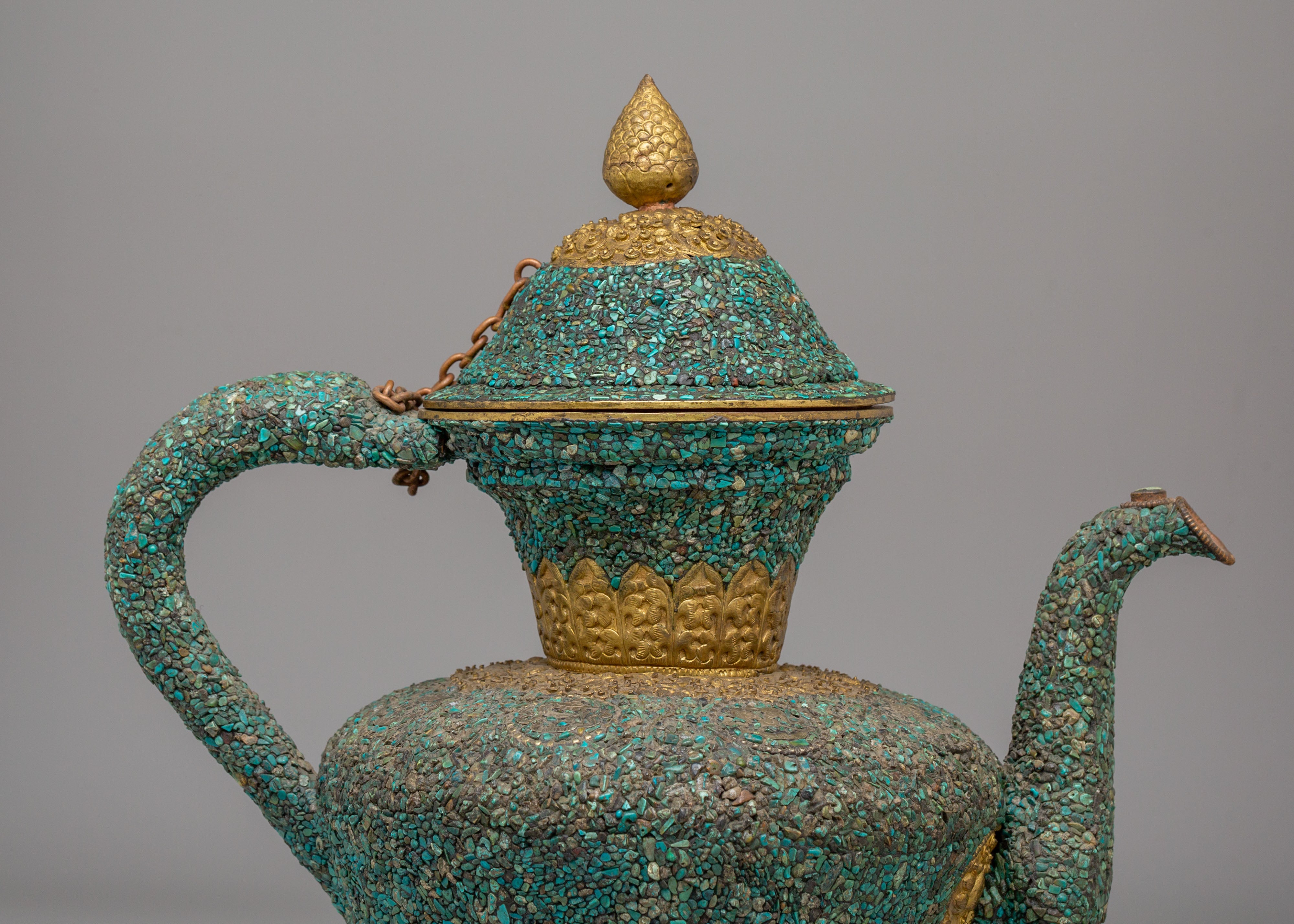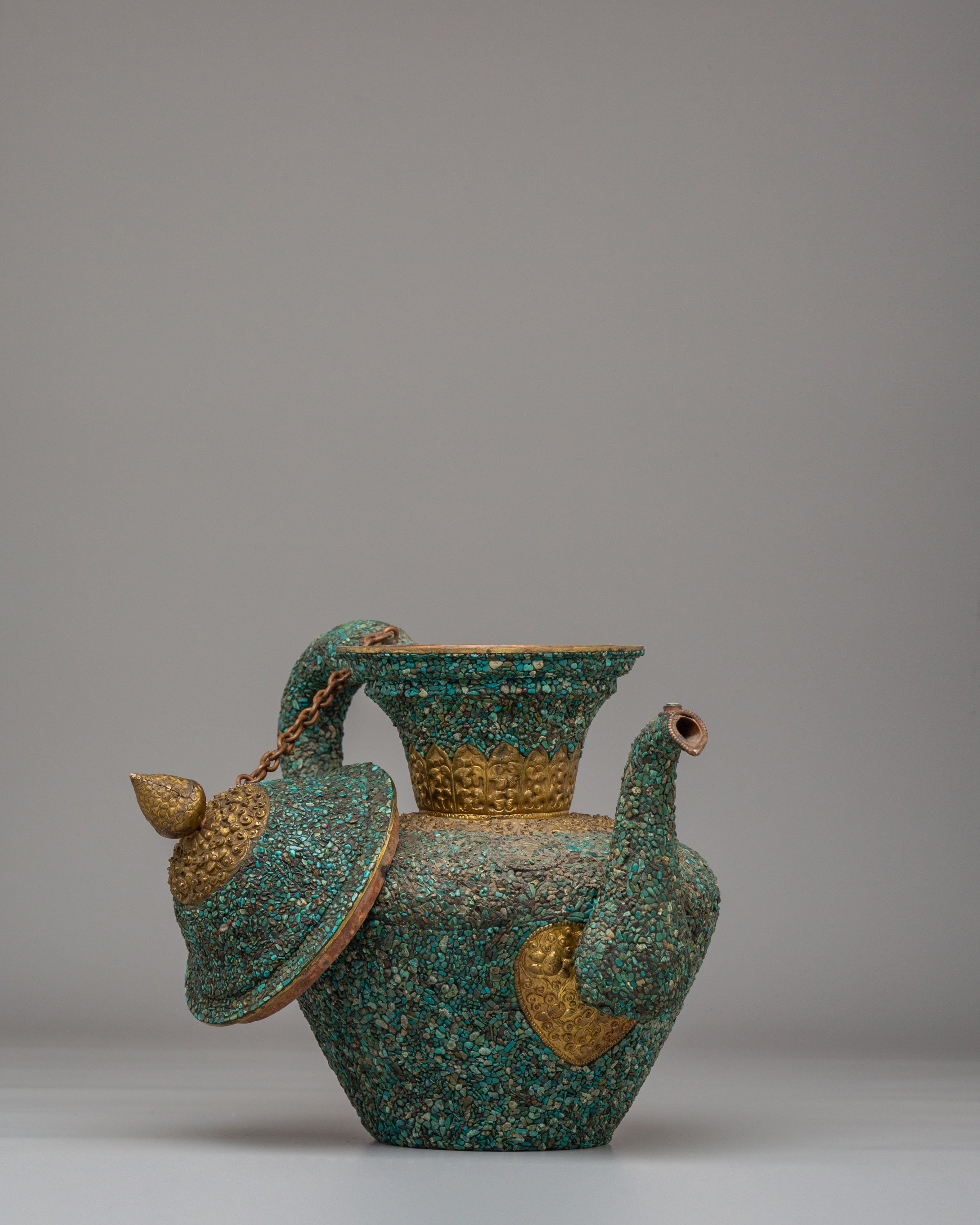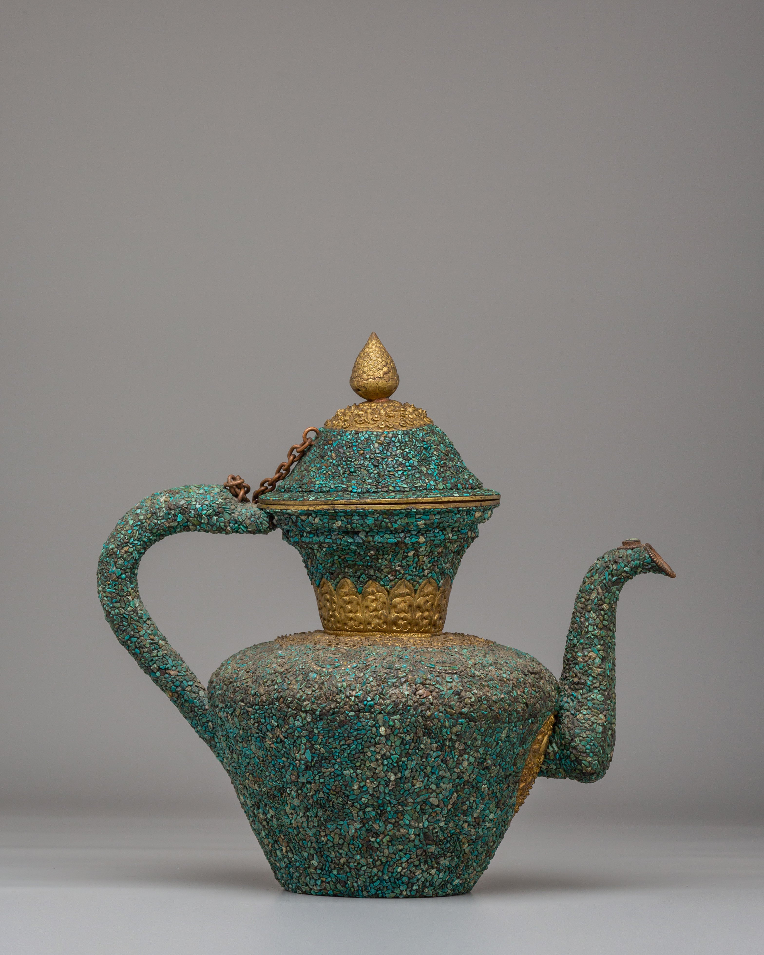 Handcrafted Traditional Tibetan-Style Tea Pot | Copper Body with Turquoise Inlay