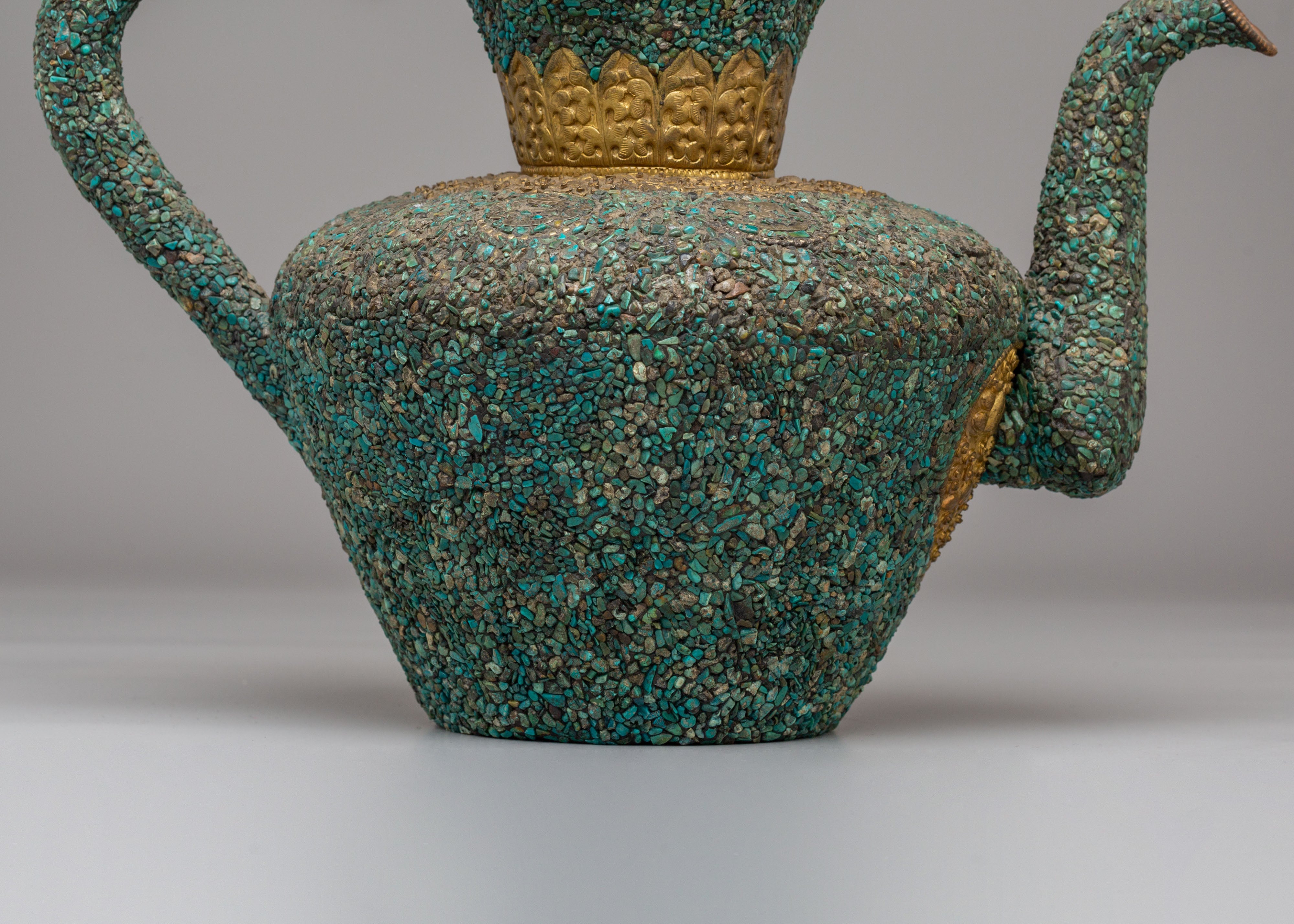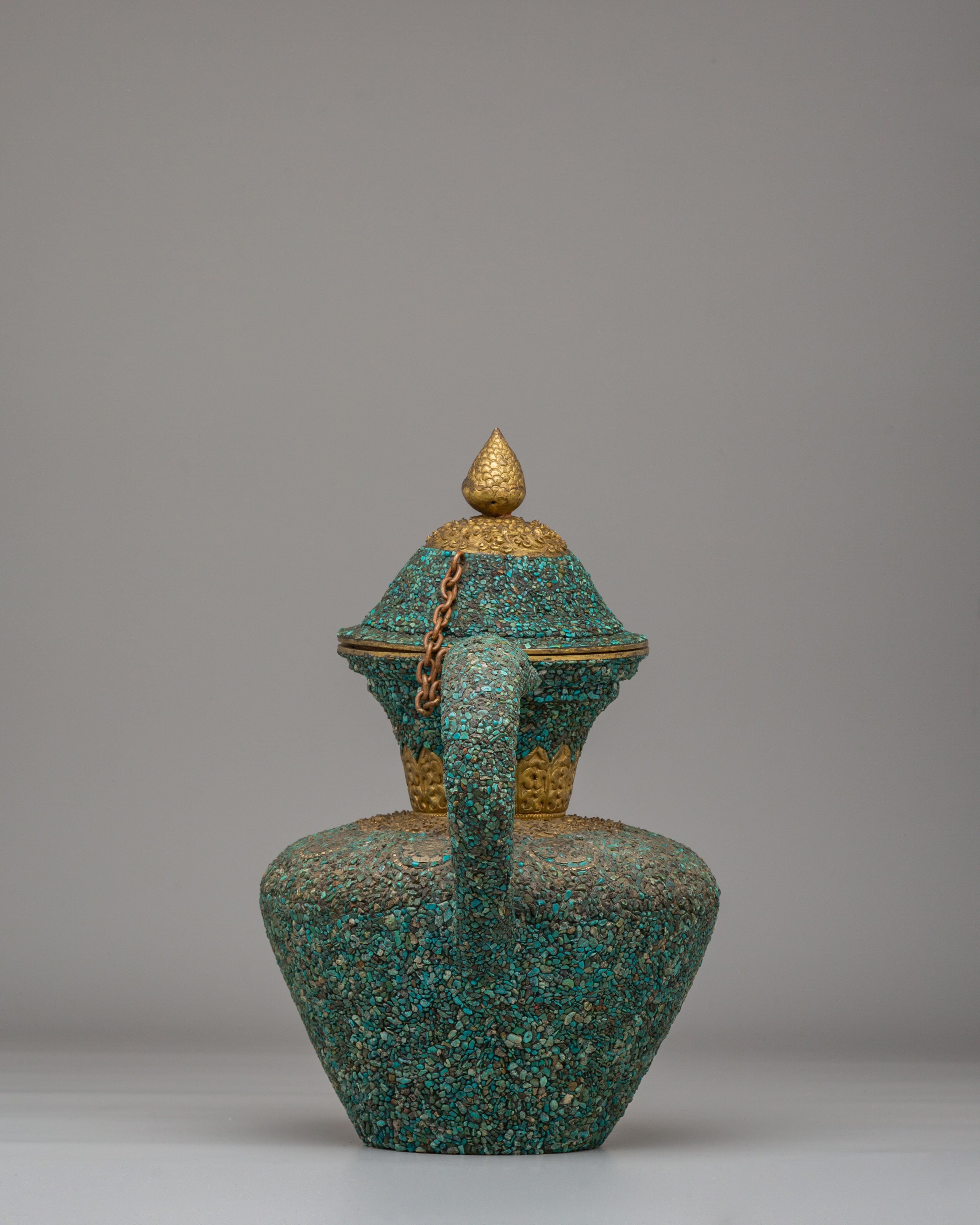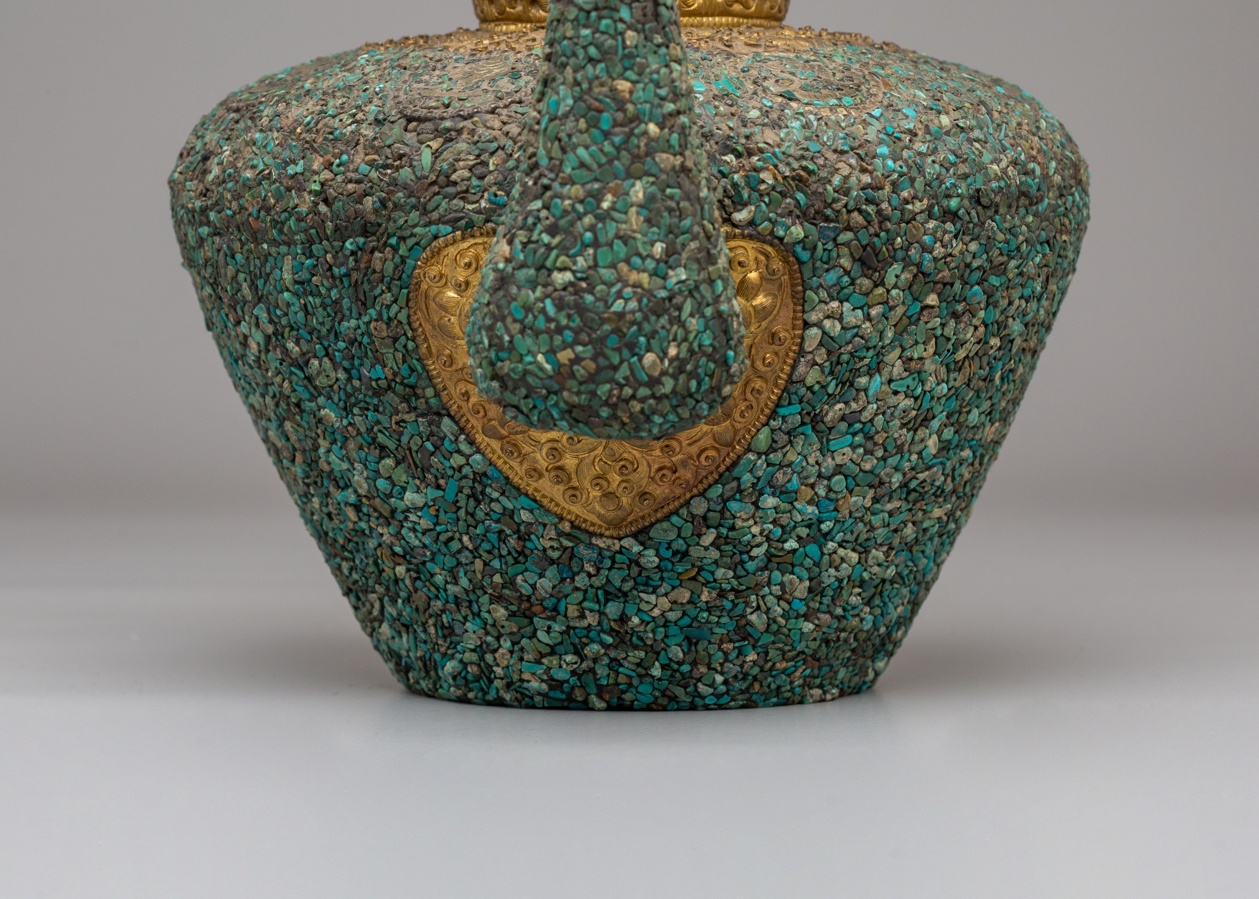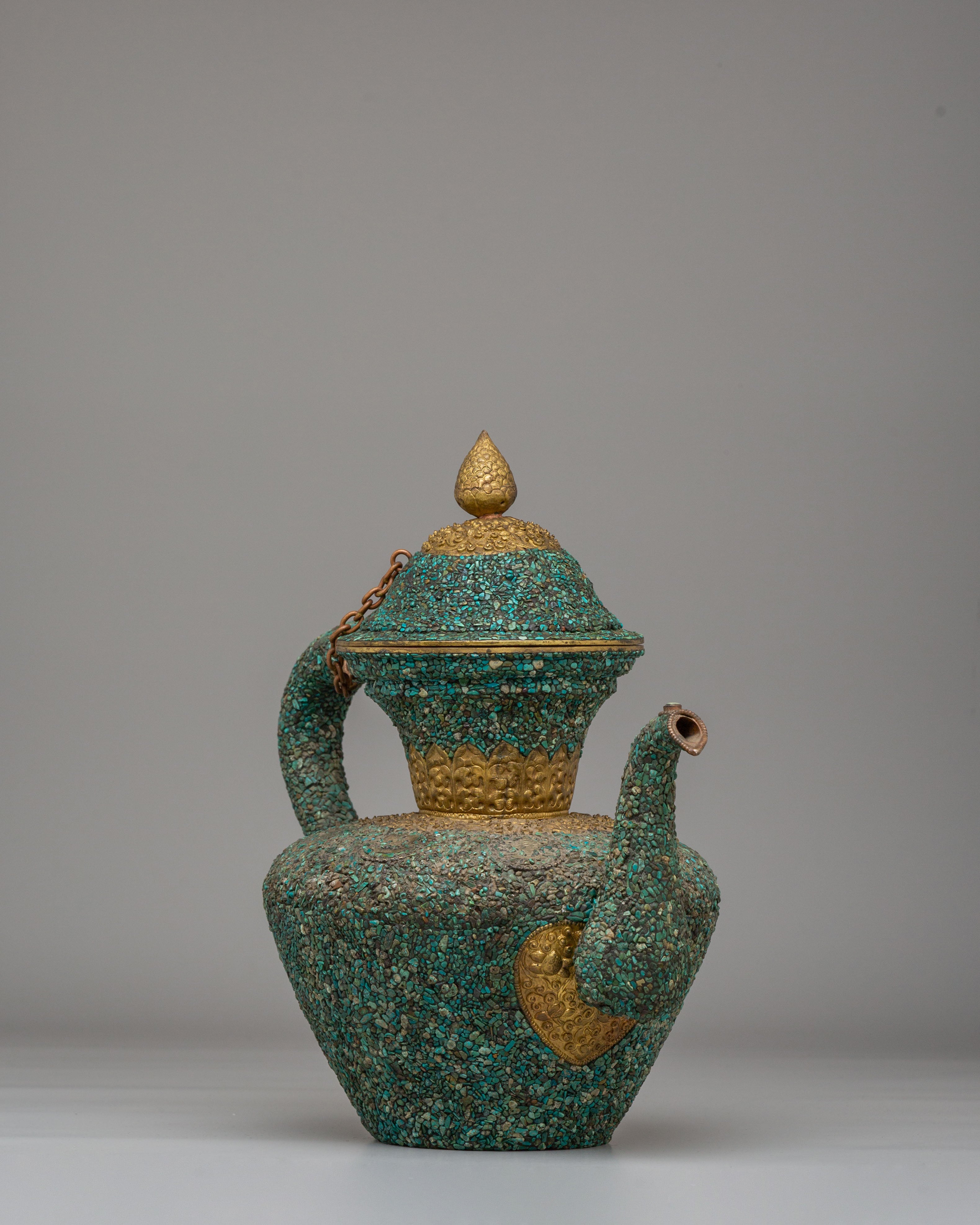 Handcrafted Traditional Tibetan-Style Tea Pot | Copper Body with Turquoise Inlay