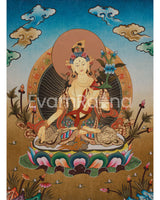 Buddhist Goddess Tara White Thangka | Divine Feminine