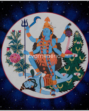 This is an original Thangka Painting of Lord Shiva also known as Shankar, Mahadeva, or Maheshwar. Lord Shiva is one of the principal gods in Hinduism. He is believed to be the god of death and time. He is known as "The Destroyer" within the Trinity/Trimurti, the triple deity of supreme divinity that includes Brahma and Vishnu. The Shaiva tradition in Hinduism considers Shiva as the Supreme Lord who creates, protects, and transforms the universe.