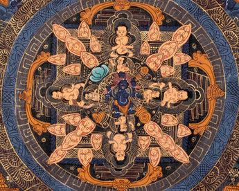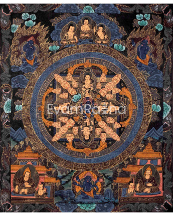 Vintage Buddha Mandala Thangka | Hevajra Mandala | Tibetan Spiritual Art for Altar Decor