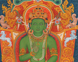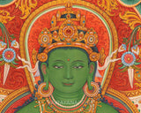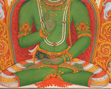 In both Mahayana and Vajrayana Buddhism, Amoghasiddhi is a highly revered divinity. He is one of the five Dhyani Buddhas who stand for various facets of enlightenment. He is regarded as the embodiment of courage and knowledge and is connected to the achievement of all acts. In print, we have portrayed, Amoghasiddhi with the color green, which stands for the element of air and signifies the capacity to surmount challenges and succeed. He is also related to the ether element and the northern direction.