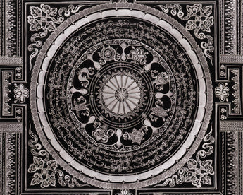 Elevate your space with the timeless elegance of this Ashtamangala Mantra Mandala print, a high-quality giclée reproduction on cotton canvas, featuring the Eight Auspicious Symbols of Tibetan Buddhism. The mandala radiates clarity, balance, and meditative stillness, making it ideal for spiritual practice or as a statement piece in any interior.
