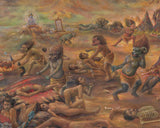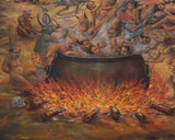 According to myths, Yamadandalokeshvara emerged from the tears of Avalokiteshvara, who wept upon seeing the suffering of sentient beings. The deity is said to have been tasked with guiding the dead through the afterlife, helping them to overcome the fears and obstacles that they encounter along the way. Yamadandalokeshvara is also associated with the bardo, or the intermediate state between death and rebirth, and is believed to help sentient beings navigate this challenging and often frightening realm.