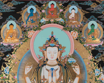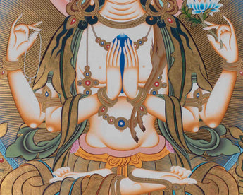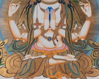 Bodhisattva Four-Armed Chenrezig represents the compassion of all Buddhas. This bodhisattva might be either male or female, and different cultures have distinct representations and definitions of what it is. However, he is commonly shown as having four arms in Tibetan culture.