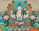 Chenrezig With Manjushri & Vajrapani Thangka Print | The Guardians of Wisdom and Compassion | Wall Decorations