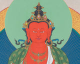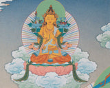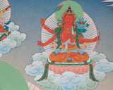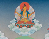 Introducing our extraordinary Manjushree Thangka Print featuring the embodiment of Manjushree in five distinct forms. This exquisite artwork captures the essence of wisdom and enlightenment, inviting you to embark on a transformative spiritual journey. Each portrayal of Manjushree showcases a unique aspect of his enlightened nature, symbolizing different facets of wisdom, compassion, and power. The intricate patterns and vibrant colors beautifully converge, creating a harmonious composition that emanates divine energy. Experience the power of Manjushree's multiple forms and the artistic excellence of our Giclee-printed cotton canvas. Embrace the divine wisdom that flows through these extraordinary artworks and allow their presence to illuminate your path toward awakening.