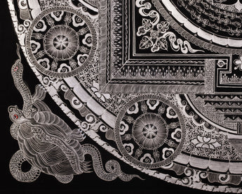 Eight Auspicious Symbol Mantra Mandala | Giclée Cavans Print | Monochromatic Artwork
