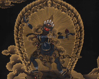 Ekajati is a highly revered protector in Vajrayana Buddhism, known as the fierce guardian of secret mantras. She is uniquely depicted with one eye, one fang, and one braid, each representing unwavering clarity, wrathful protection, and focused intent. Encircled by a blazing aura of flames, she symbolizes clearing obstacles and shielding practitioners on their spiritual path. This Ekajati Thangka Print captures her commanding energy, serving as a potent meditation aid and a compelling piece of sacred art.