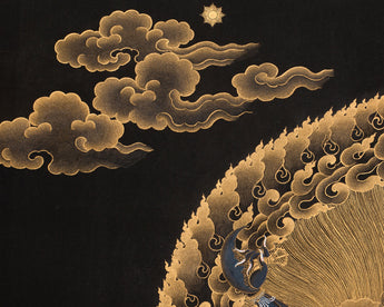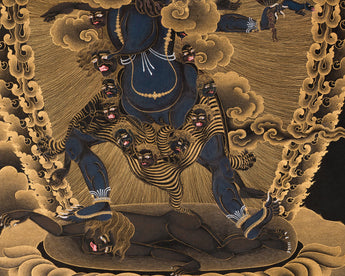 The Ekajati Thangka Print is a high-quality reproduction that retains the intricate details and brilliance of the original artwork, which measures 25 x 30 inches. Created on durable canvas with advanced printing techniques, it vividly captures the vibrant gold-on-black Nakthang style with clarity and precision. This print lets you bring the power and beauty of traditional thangka art into your altar, meditation space, or home decor, available in your preferred size for versatility.