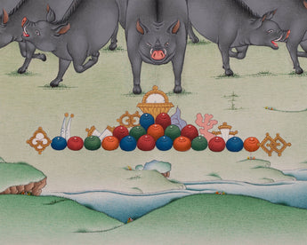 As requested for consecrations/blessings, we can take the thangka to monasteries or the rinpoche from the nearby Boudha Stupa. We kindly ask that you offer $50 to support the monasteries for the blessings/consecration service.