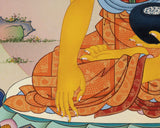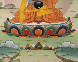 This stunning thangka print of Shaykamuni Buddha Prayer will empower you during meditation or yoga and on can be utilized for many Buddhist ceremonies and rituals.