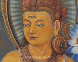 In the thangka print, we have portrayed the Ruler of Trayastrimma, Lord Indra. His crown is decorated with five or more jewels, signifying his rule over the five elements and his enlightened state. Surrounded by a retinue of other celestial beings, Indra is recognized as a leader in the divine realm. In Mahayana Buddhism, he is considered a significant divinity and is often featured in thangkas and other Buddhist art forms, particularly in the Vajrayana or Tibetan Buddhist school. Indra is held in high esteem as the supreme god, associated with strength, power, and safety. In certain Vajrayana teachings, he is also perceived as a protector of the Dharma, or the teachings of the Buddha.