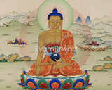 Seated Shakyamuni Buddha Thangka Print | Historical Buddha Tibetan Poster For Meditation