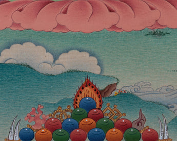 As requested for consecrations/blessings, we can take the thangka to monasteries or the rinpoche from the nearby Boudha Stupa. We kindly ask that you offer $50 to support the monasteries for the blessings/consecration service.