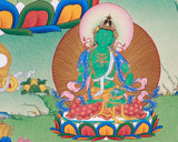 The Traditional Amitayus Thangka Print, portraying the Buddha of Boundless Life, encapsulates the essence of longevity, vitality, and spiritual rejuvenation within Buddhist tradition. Amitayus, also known as the Buddha of Infinite Light, is depicted in this sacred artwork with serene grace and compassionate wisdom. Adorned with divine ornaments and seated upon a lotus throne, Amitayus emanates an aura of radiant vitality and eternal bliss. Each delicate brushstroke and intricate detail of the Thangka print captures the essence of Amitayus' compassionate presence, inspiring a sense of reverence and awe. As the embodiment of boundless life and spiritual renewal, Amitayus offers devotees a pathway to healing and spiritual rejuvenation. Displaying this sacred artwork in homes and meditation spaces serves as a potent reminder of Amitayus' blessings and the limitless potential for spiritual growth and eternal renewal on the path to enlightenment.