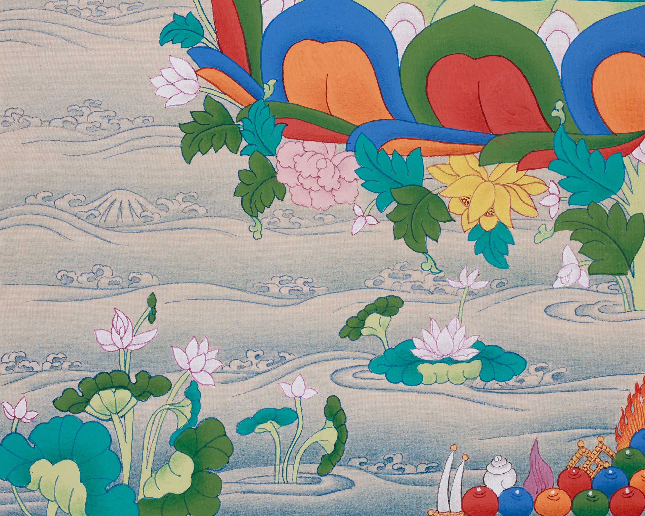 - Regularly inspect your thangka; examine the borders and all attachments.