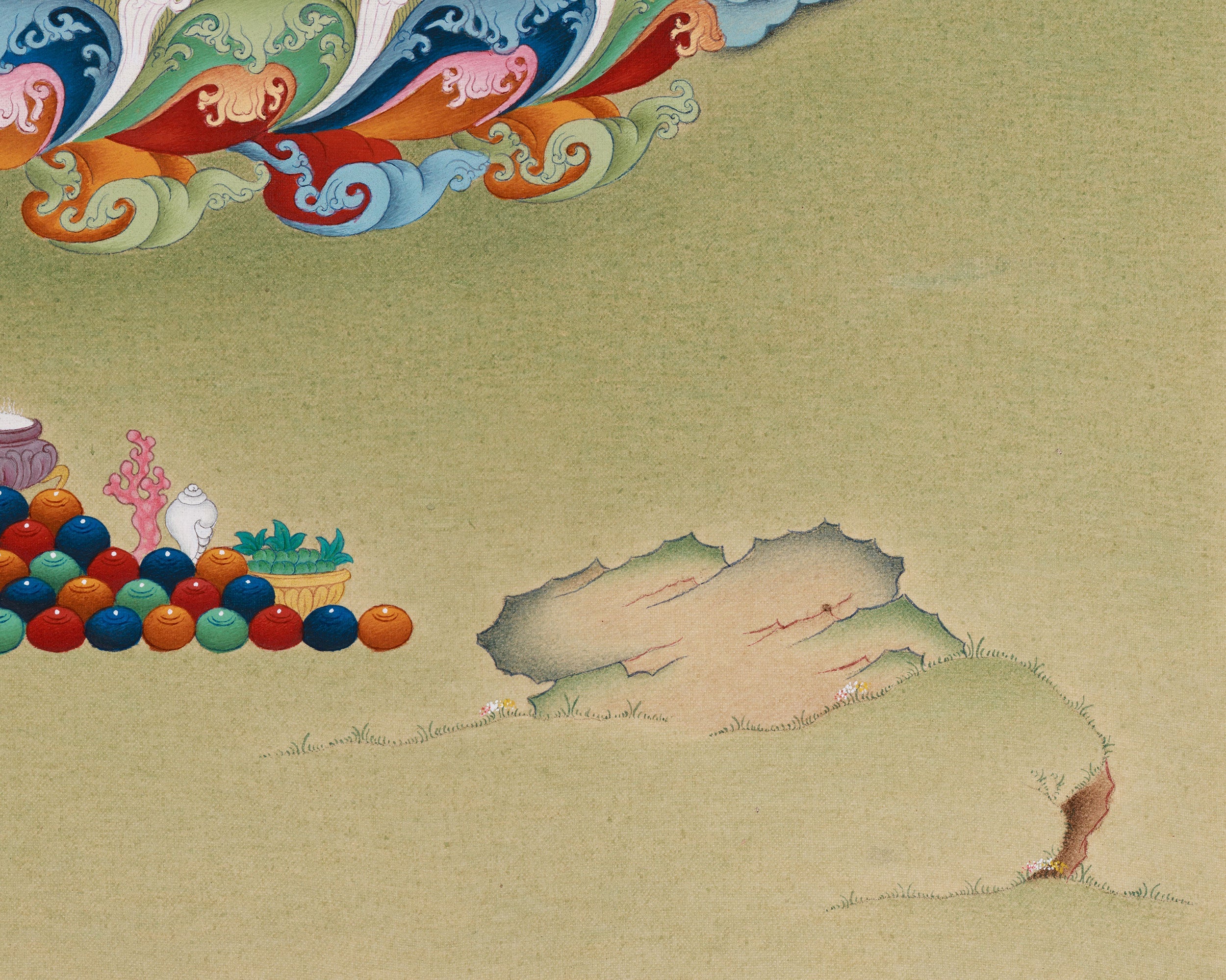 HAND-PAINTED WITH NATURAL LHASA STONE COLOR AND GENUINE 24K GOLD IN TRADITIONAL KARMA GADRI STYLE