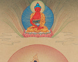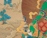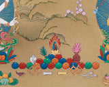 Each figure in this thangka is thoughtfully painted with intricate detail, capturing the deep symbolism and spiritual significance behind these deities. The rich textures and colors not only honor Tibetan Buddhist traditions but also serve as a meaningful addition to any sacred space, promoting peace and harmony in your home or meditation room.