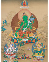 Tibetan Himalayan Buddhist Goddess Green Tara | With Amitabha Buddha, Namgyalma & Parnashavari | Guardians of Wisdom, Healing, and Prosperity